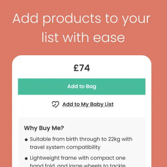 My Baby List allows you to create a personalised list of products to keep track of everything you need for your baby’s arrival and beyond. Think of it as a baby wishlist or a newborn checklist; it helps you plan, organise, and save the items you love in one easy place to shop whenever you’re ready.