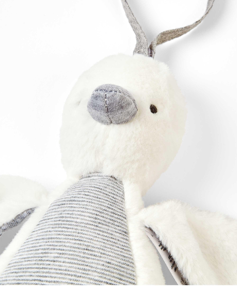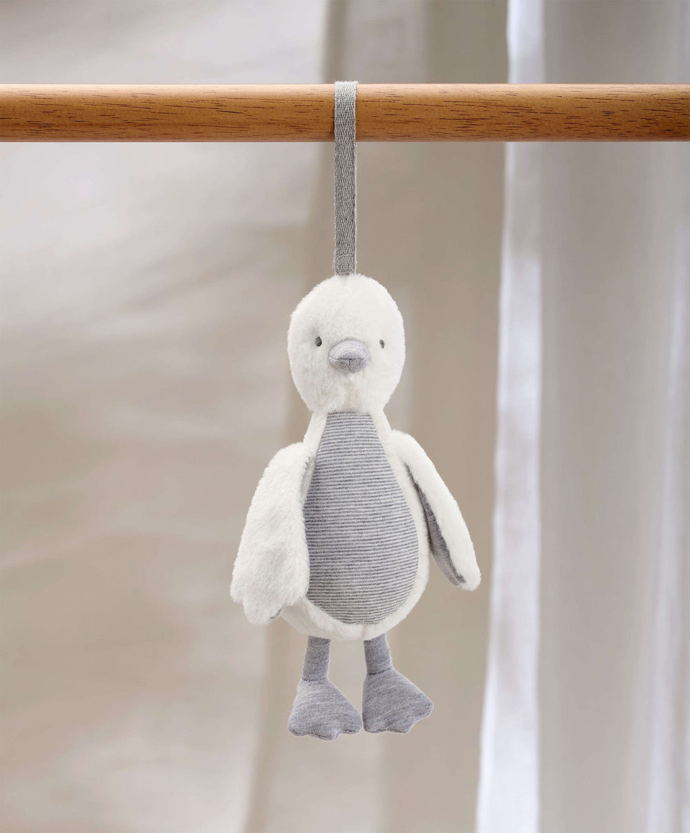 This musical travel buddy will have your little one quacking a smile! She’s hiding a bell inside her, so she’ll jingle when she’s shaken. Attach to their pushchair or carrycot so she doesn’t fly away!