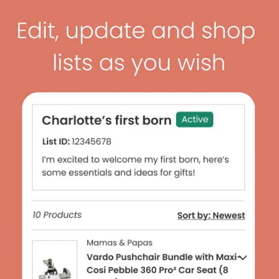 To edit your baby wishlist, sign in to your Mamas & Papas account and go to My Baby List. From there, you can: