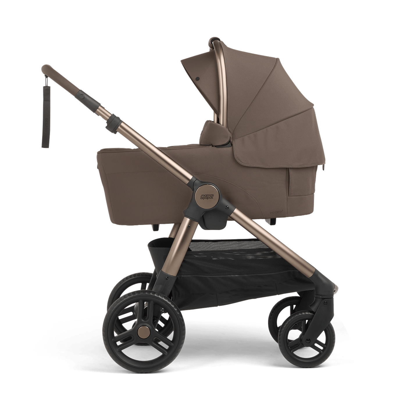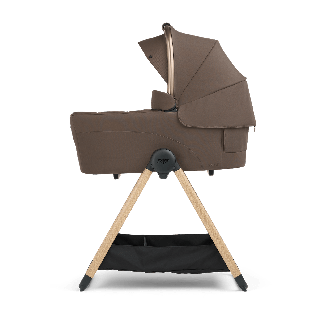 Approved for overnight sleep and compatible with coordinating stand, the carrycot transitions seamlessly from pushchair to bedside or living space for safe, undisturbed rest.