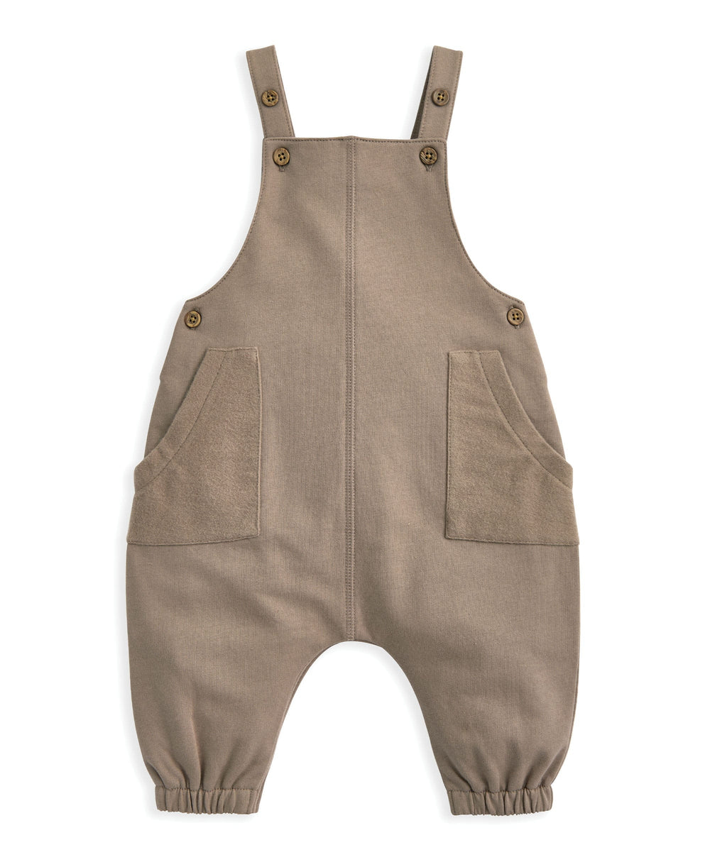 - Dungarees with adjustable button-fastening straps, button side and popper gusset openings, patch pockets and elasticated cuffs