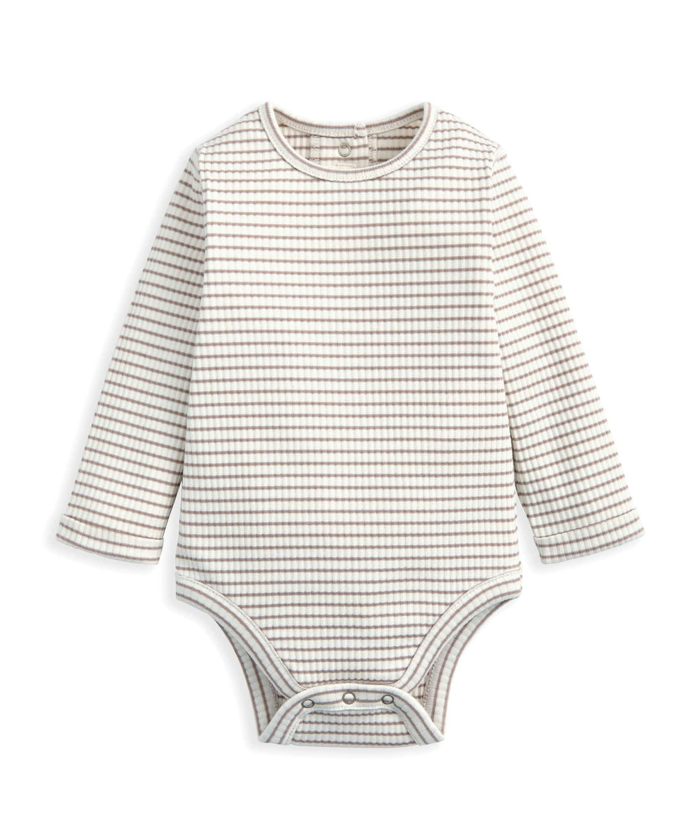 - Coordinating long-sleeved, striped bodysuit with turnback cuffs and popper gusset opening