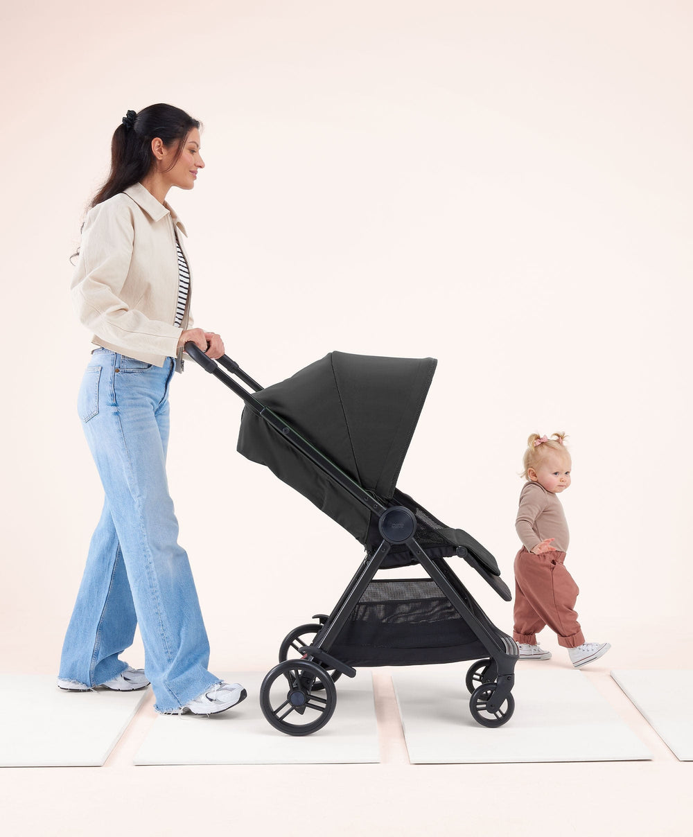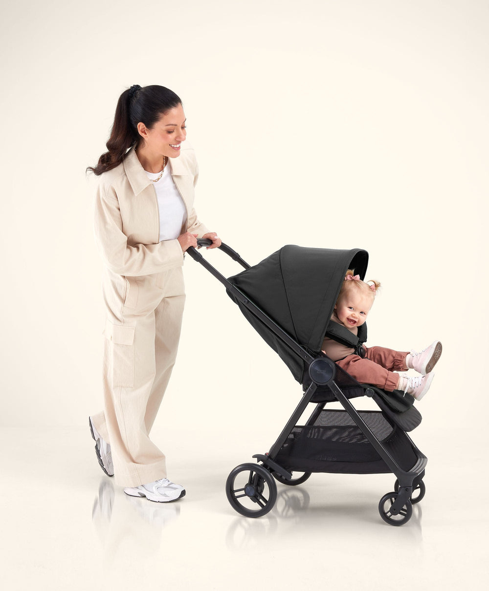 The next-stage stroller that’s designed for the reality of everyday. With our much-loved one-hand fold, for ease and speed. Ultra-lightweight, at just 7kg – a similar weight to a 6-month old, it’s easy to carry, using the handy carry strap. Ultra-slim when folded - only 10cm wide, not including wheels – it slides easily into all the small gaps, from your jam-packed car boot to behind the front door. Features a higher and more spacious seat – so there’s more space to spread out and more leg room for your growing toddler. Packed with features designed to be useful in everyday life, including easy-access large storage basket and XL hood made with UPF 50+ rated fabric with 4 customisable levels of ventilation for babies comfort, and all-weather protection. With complete adjustability throughout – including adjustable height handlebar, leg rest, hood coverage and lay-flat seat recline – Libro adapts to match a growing family’s ever-changing needs. In Liquorice, a bold black-on-black design. Suitable from birth to toddler.