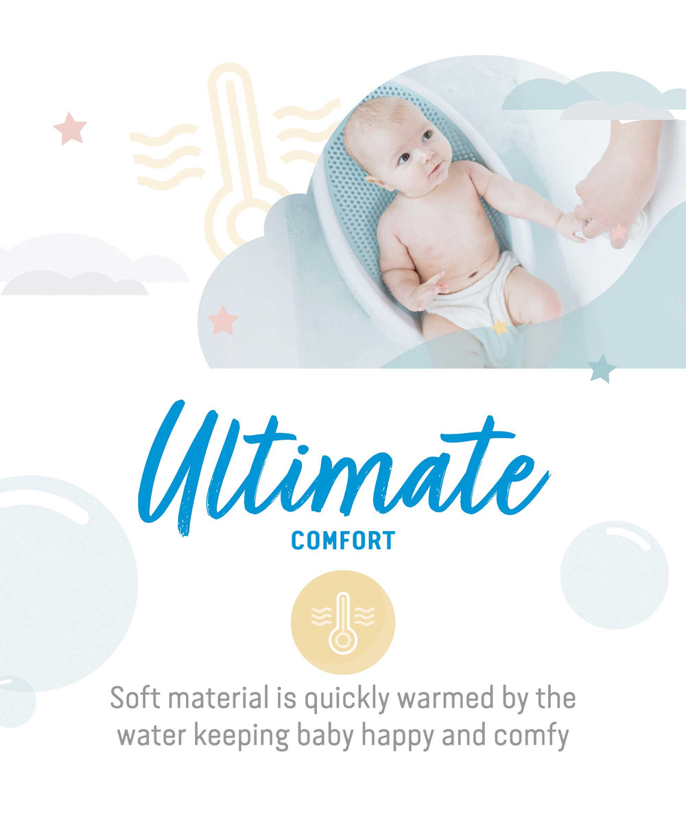 • Designed for your baby's comfort. It provides optimal support and comfort whilst bathing. It allows the baby to sit in the bath rather than lying down.