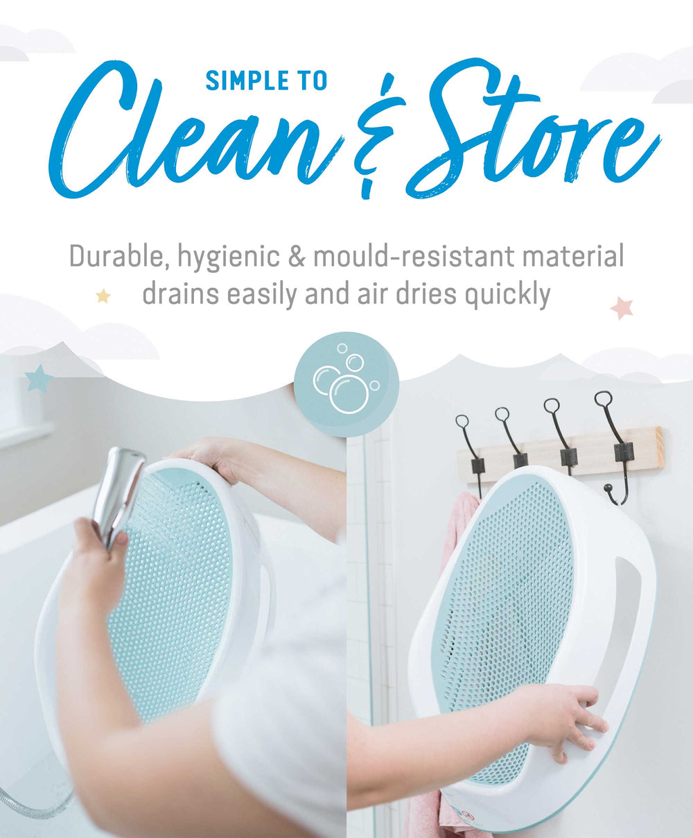 Simple to use straight in the bath and easy to clean and store, our bath support is also hygienic and mildew free. The soft fashion colours blend in with any bathroom or nursery. The perfect choice for babies from birth up to 6 months of age, for a fuss free bath time. This product can be used up to when your child can sit unaided.