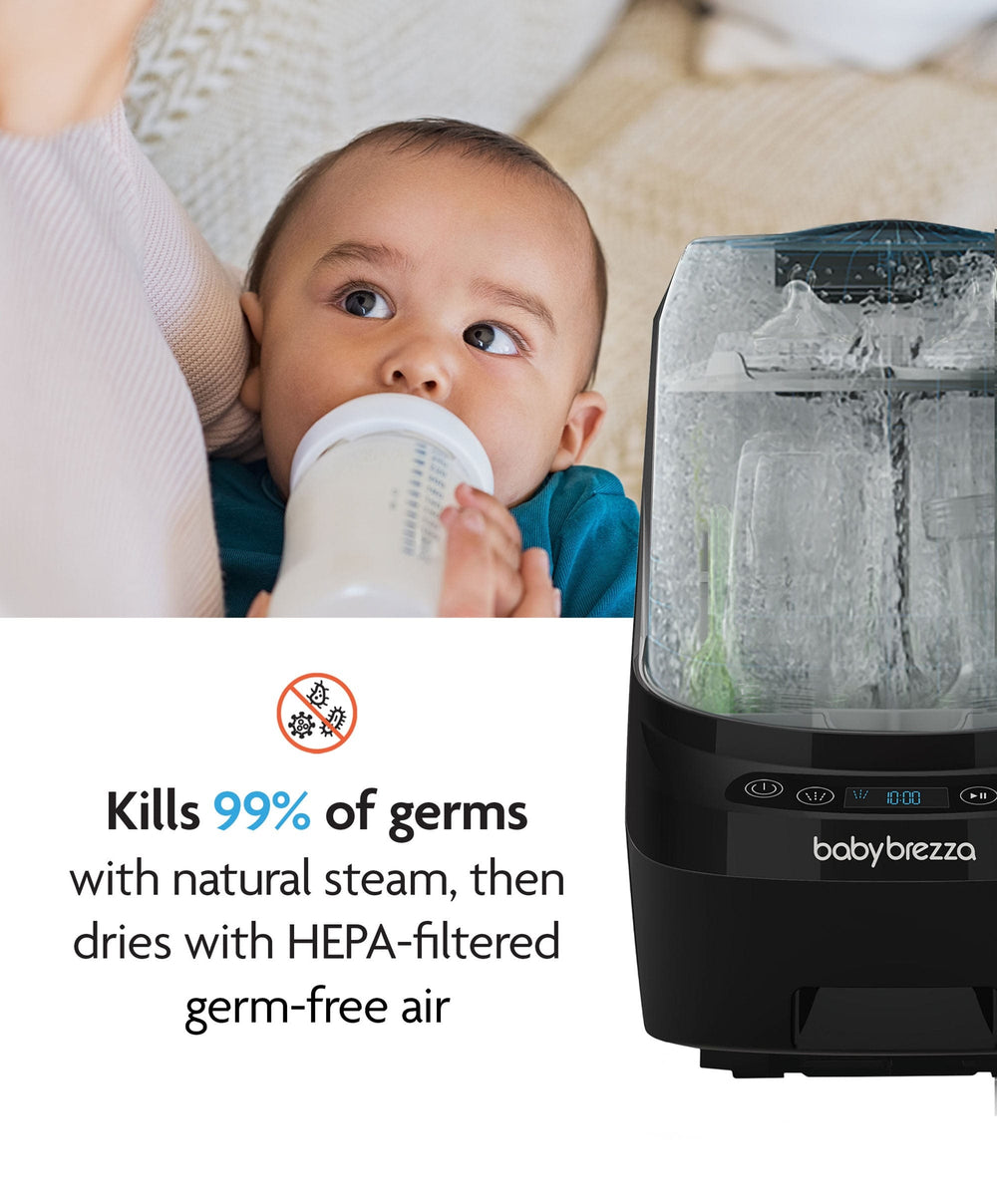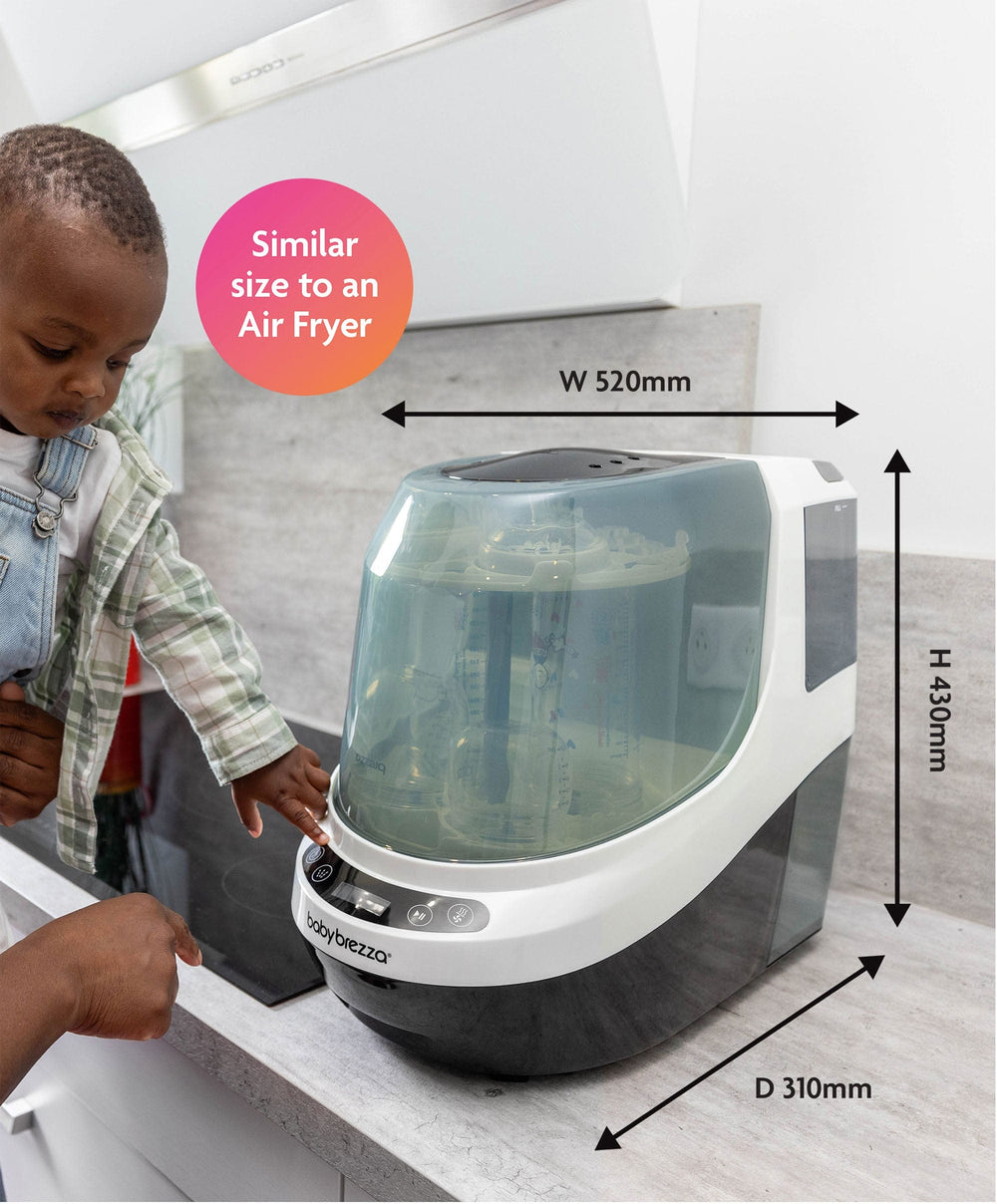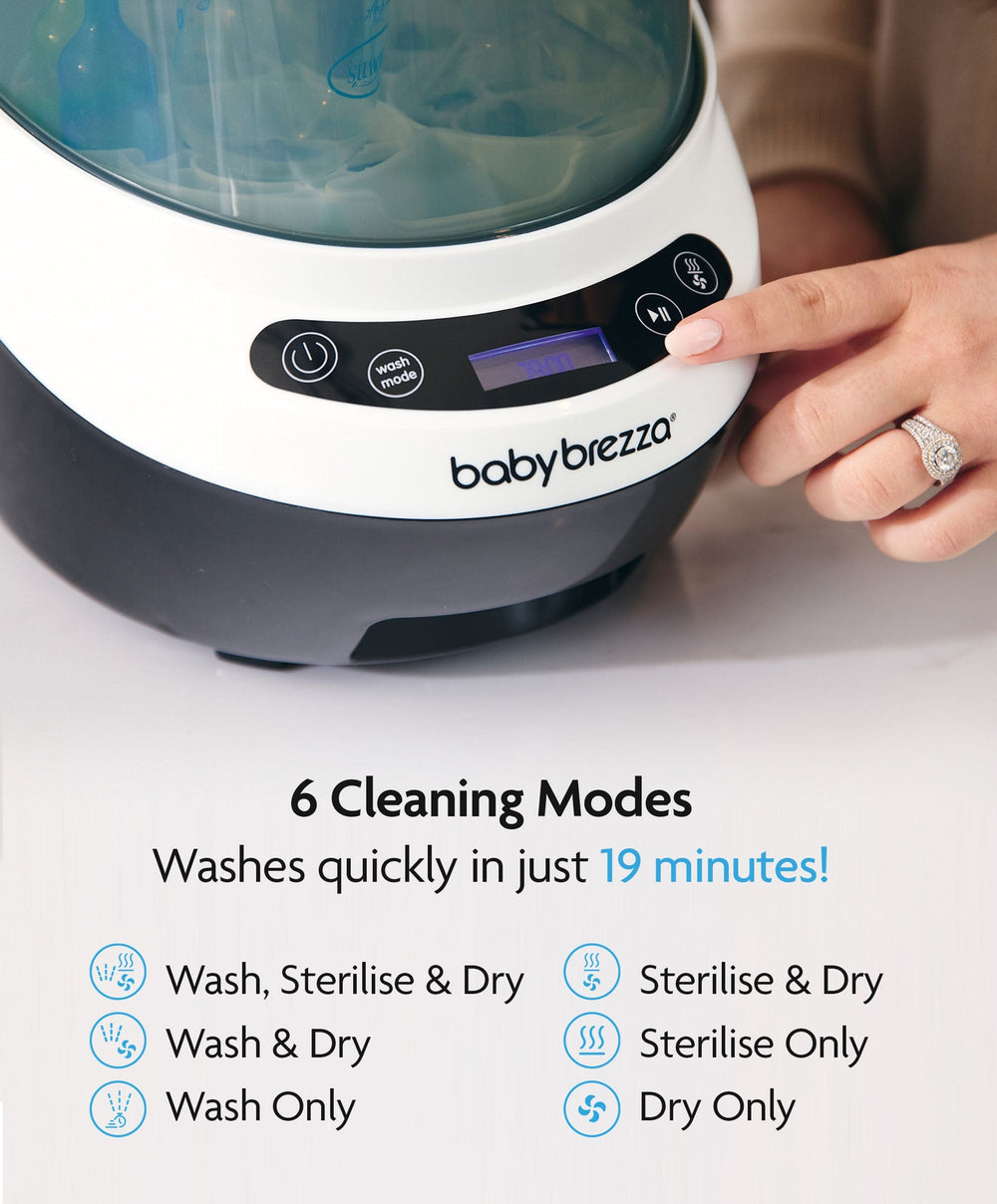 Experience the future of bottle cleaning with the Baby Brezza Bottle Washer Pro. The first appliance to automatically wash, sterilise and dry bottles and accessories all-in-one go. Powerfully eliminating milk residue with its 20 high-pressure spray jets, this machine ensures all the surfaces of bottles, breast pump parts and accessories are cleaned. Also utilising natural steam to kill 99.9% of germs, then drying completely with germ-free, HEPA-filtered hot air.