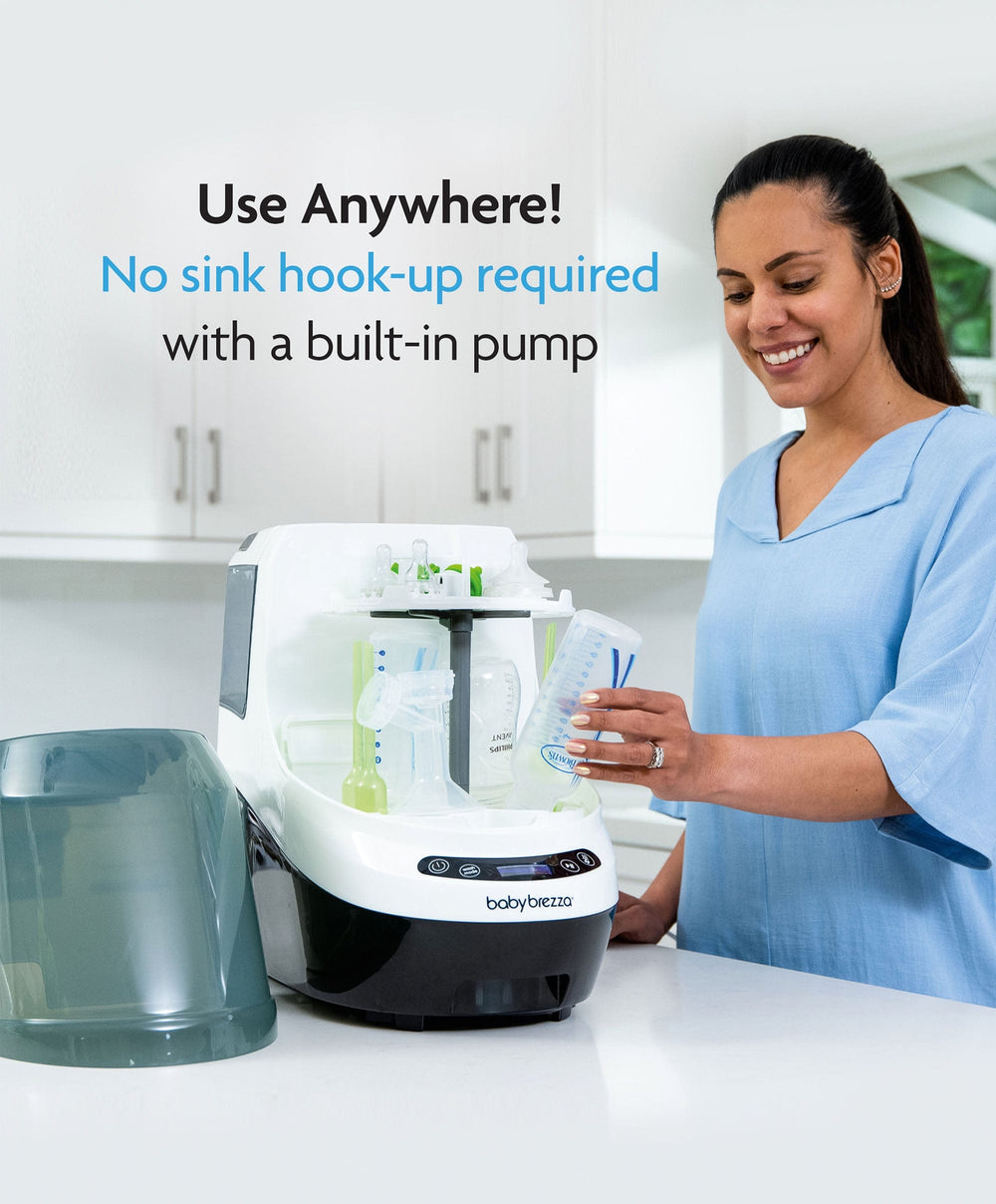 The Bottle Washer Pro can hold up to 4 bottles, breast pump parts, and accessories from any brand, and requires no external plumbing, making it easy and convenient to use. Say goodbye to the traditional bottle brush and hello to clean bottles and accessories at the push of a button!