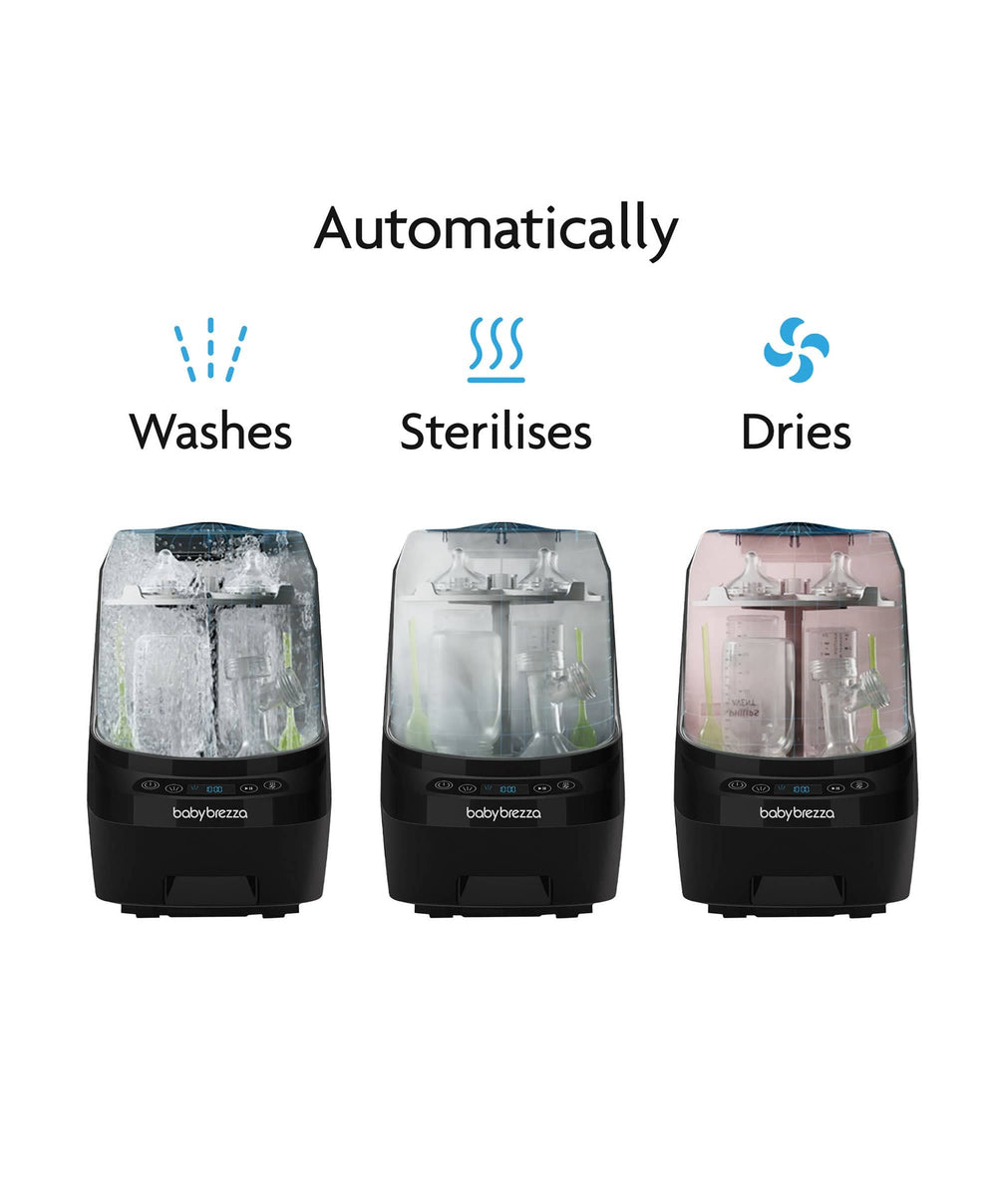 - Effortlessly washes, sterilises and dries bottles and pump parts