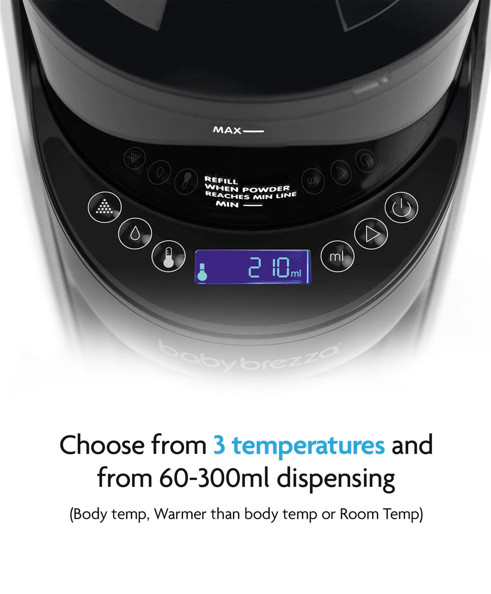 You can customize the perfect bottle for your baby by choosing your increments between and temperature settings or dispensing water only.