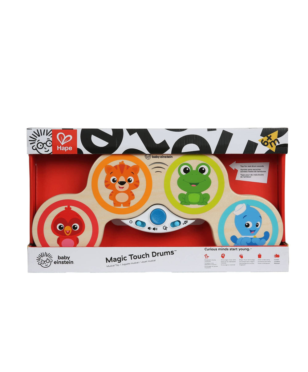 Hape’s Magic Touch Drums. Tap each of Baby Einstein’s friends to play a different note, and magic touch technology means there are no buttons needed! Baby toys that make music will encourage your rock star to think and act creatively. Two different modes mean there are lots of ways your little one can play or start composing their own hit melodies. The toy’s Drum Mode and Melody Mode let baby switch between playing along with classical tunes or moving to their own groove. Get ready to join in – playing the drums is just as fun for baby as it is for you too! And don’t worry about waking little brother or sister. The volume control buttons let you turn the music to “low” when you need to or crank it up to “high” to rock out. At either volume, the higher end quality speakers make sure your baby’s beats sound just right.