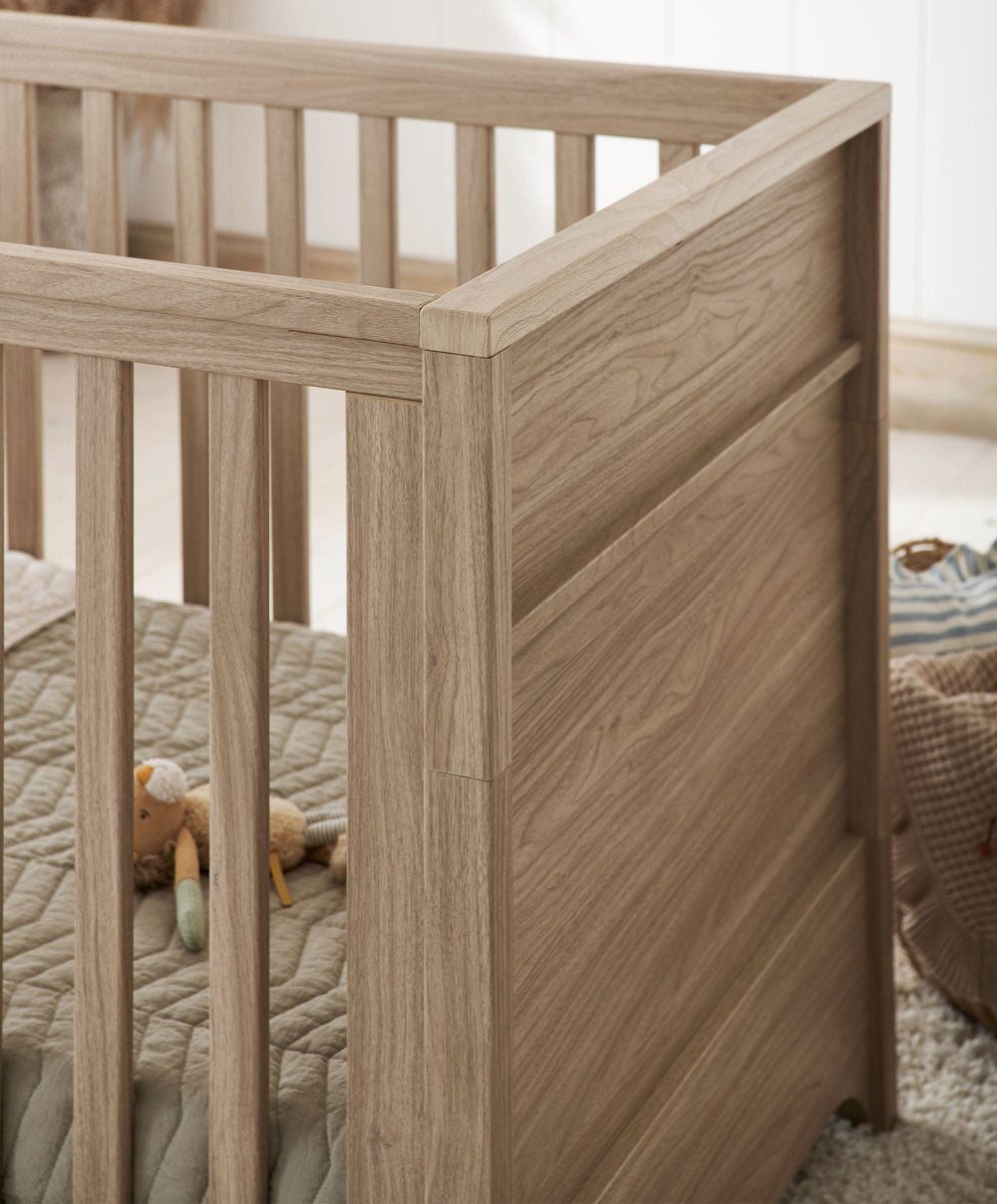 Your little one will enjoy the sweetest dreams in our Barton cotbed, designed to grow with them from newborn to toddler. With three adjustable base heights and simple conversion into a toddler bed, it will keep them sleeping soundly up to around 4 years old. With a warm natural oak effect finish, Barton’s beautifully simplistic design—with its soft curved-edge feet—fits effortlessly into any nursery style.