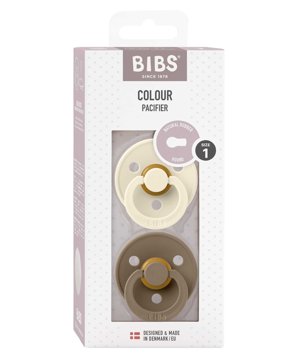 BIBS Colour Dummies 2 Pack Size 1 - Ivory/Dark Oak