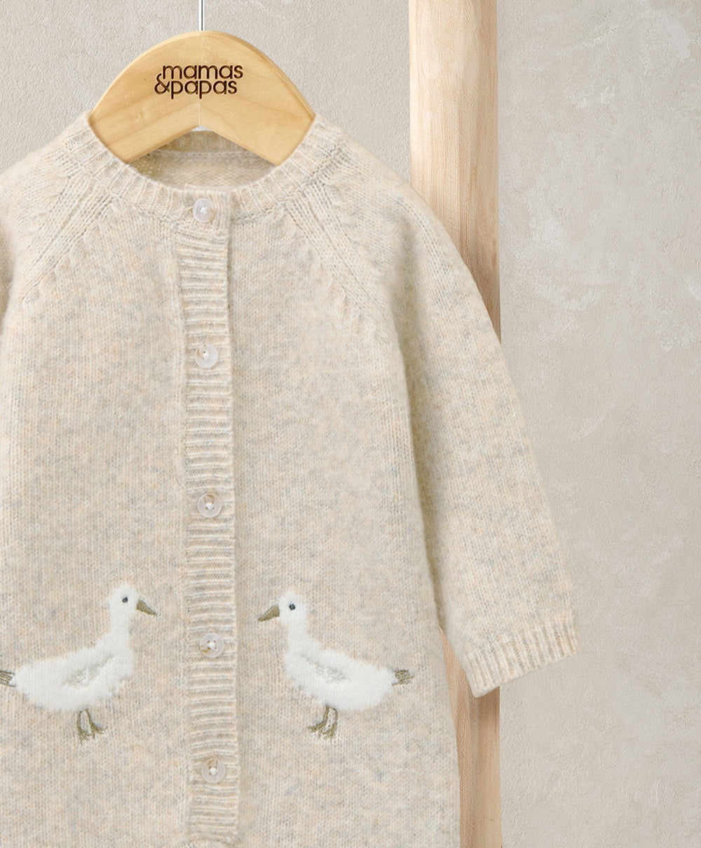 This adorable duck detailed knitted romper is perfect for cute, everyday wear.