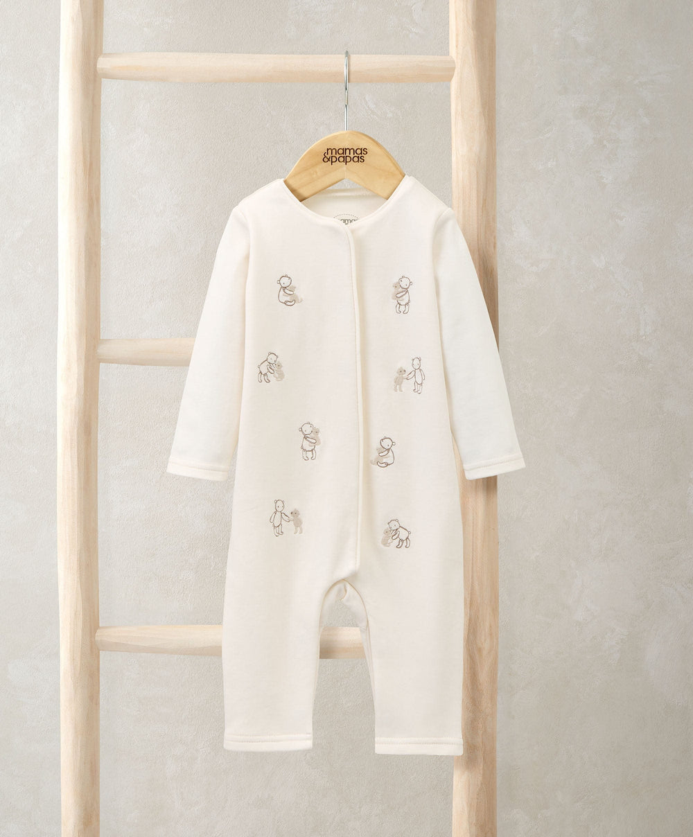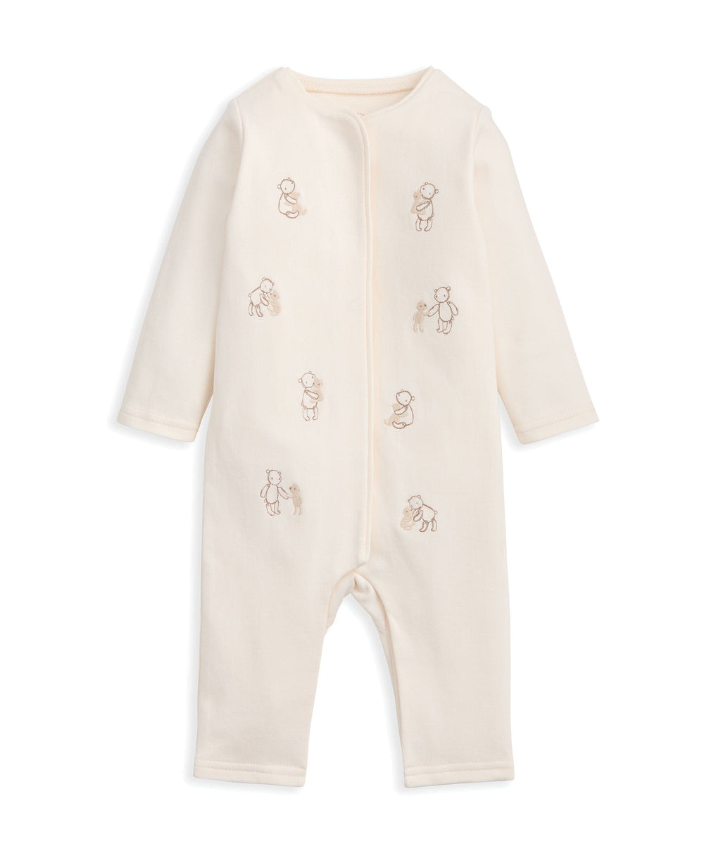 A soft teddy bear embroidered romper, perfect for cosy everyday wear.