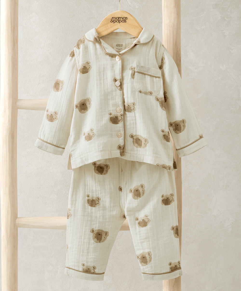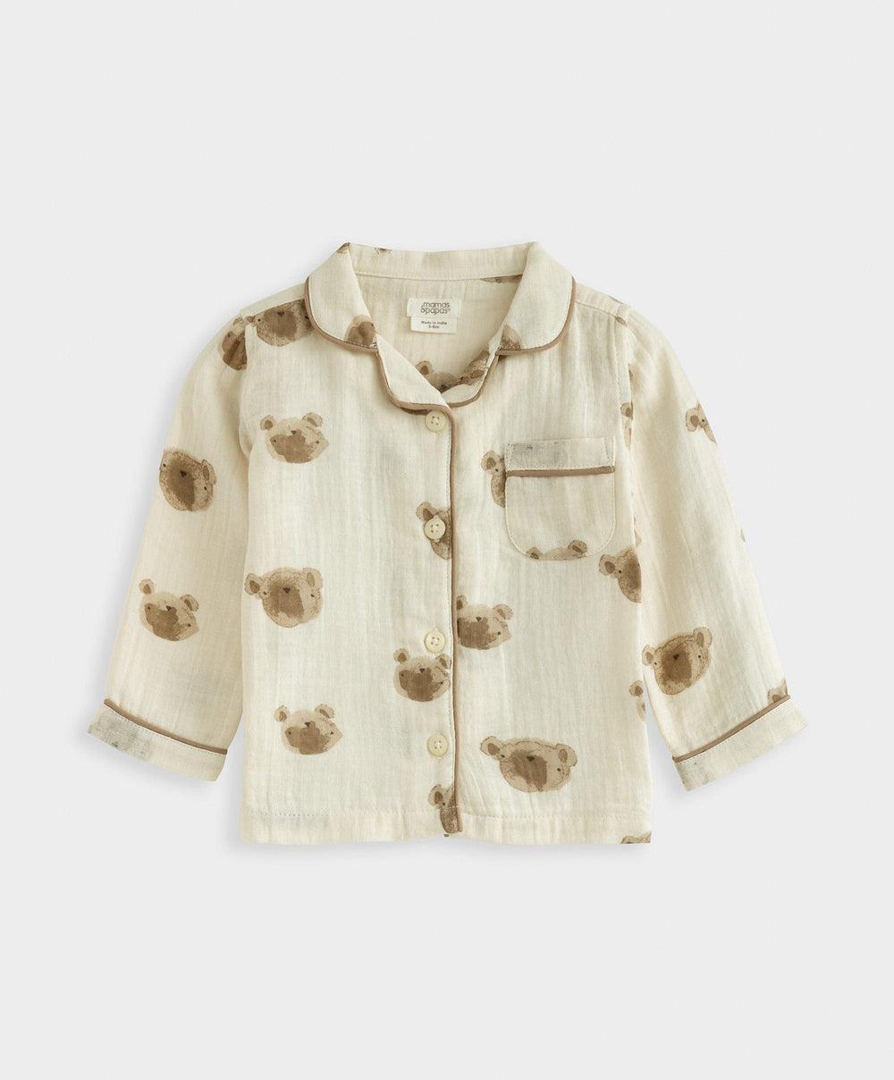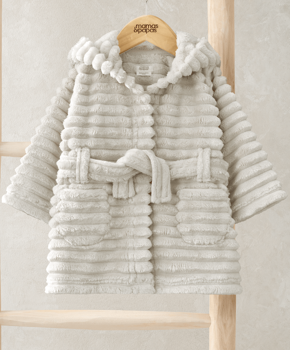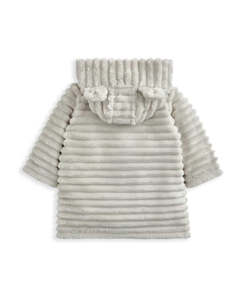Super soft ribbed fur dressing gown with bear ears and embroidered face on the hood.