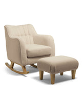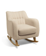 Our Hilston Nursing Chair and matching footstool set makes a seriously stylish addition to your baby's room- or any room. Inspired in style by latest interiors trends, with the longevity and quality of all our in-house furniture and with a design that favours comfort and ergonomic support, this is more than just a piece of furniture, this is a piece that will enhance your room and elevate your nursing experience. Super soft, deluxe and elegant in style, in this trend-led oatmeal-coloured boucle, it’s enriched with classic detailing such as button back touches and piped edging. For an ultra luxe finish. Hilston’s ergonomic shape has been designed to offer effective cushioned support while you feed or nurse your child. The upholstered arms are positioned at an optimum height for improved comfort, with legs that let you create a soothing, rocking motion for baby. Made in Britain Hilston uses premium materials including solid oak rocking legs and a fully upholstered seat of soft, plush boucle fabric, offering a luxurious feel at feeding times. With a button back design, piped detailing and a reversible cushion that can be removed for easy-cleaning, it's a stylish piece that will definitely last. The luxury boucle design will look just as at home in another room of the house as your nursery. Matching footstool elevates comfort and enhances the experience of the Hilston nursing chair. Co-ordinating effortlessly it makes an even more impactful style statement than the nursing chair alone, too.