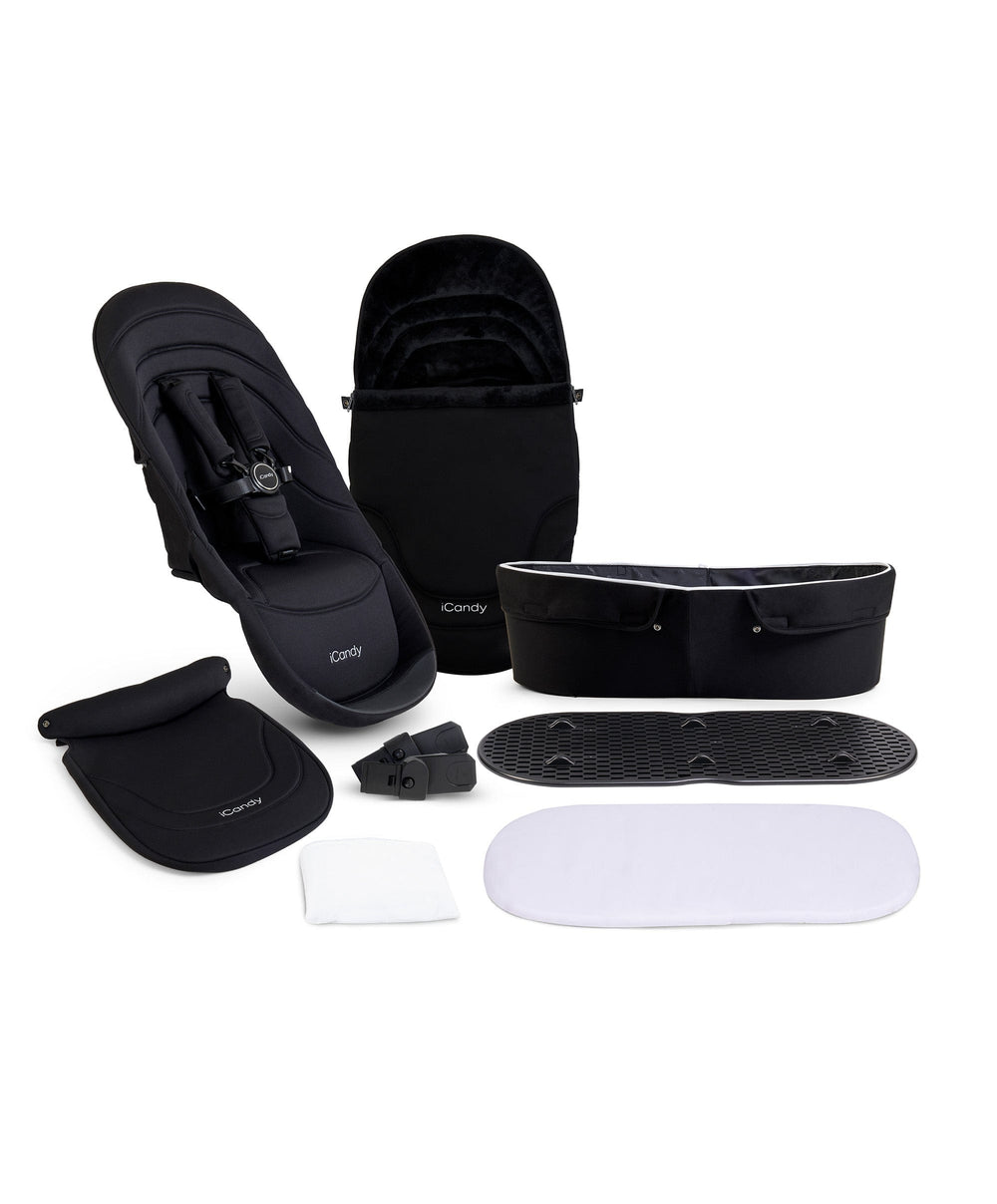This product Includes: Second Carrycot Fabric & apron, second seat fabric, footmuff & lower car seat adaptors