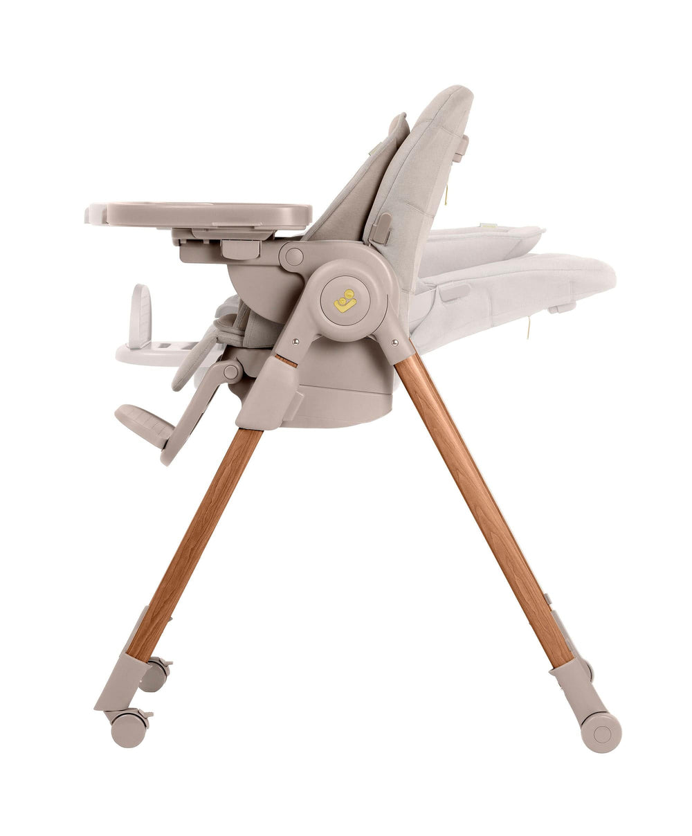 - Integrating wood tones with soft fabrics, the highchair’s design is inspired by nature, subtly complementing modern interiors
