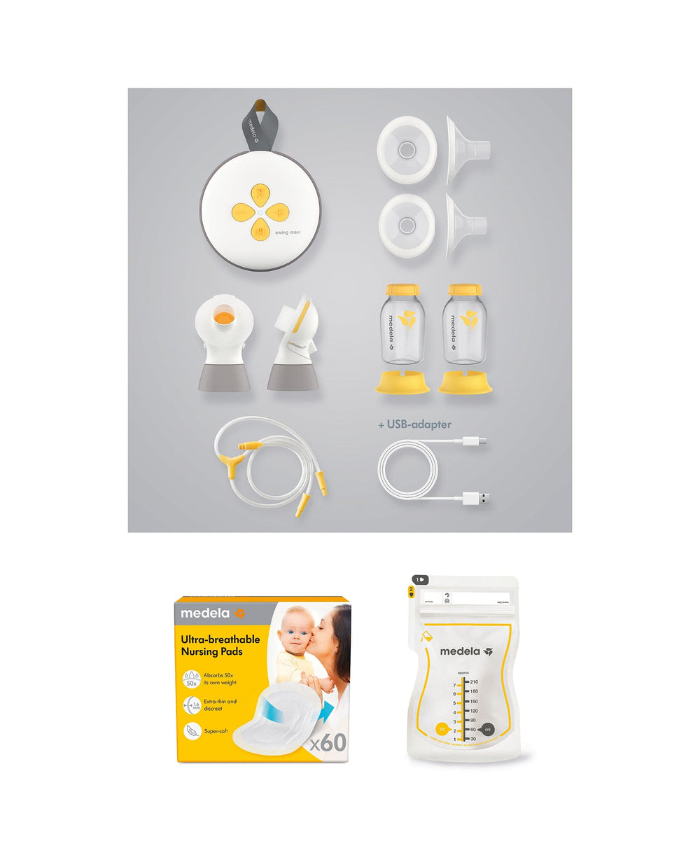 This bundle contains the Medela Swing Maxi™ Double Electric Breast Pump, 60 x Nursing Pads and 50 x Storage Bags.