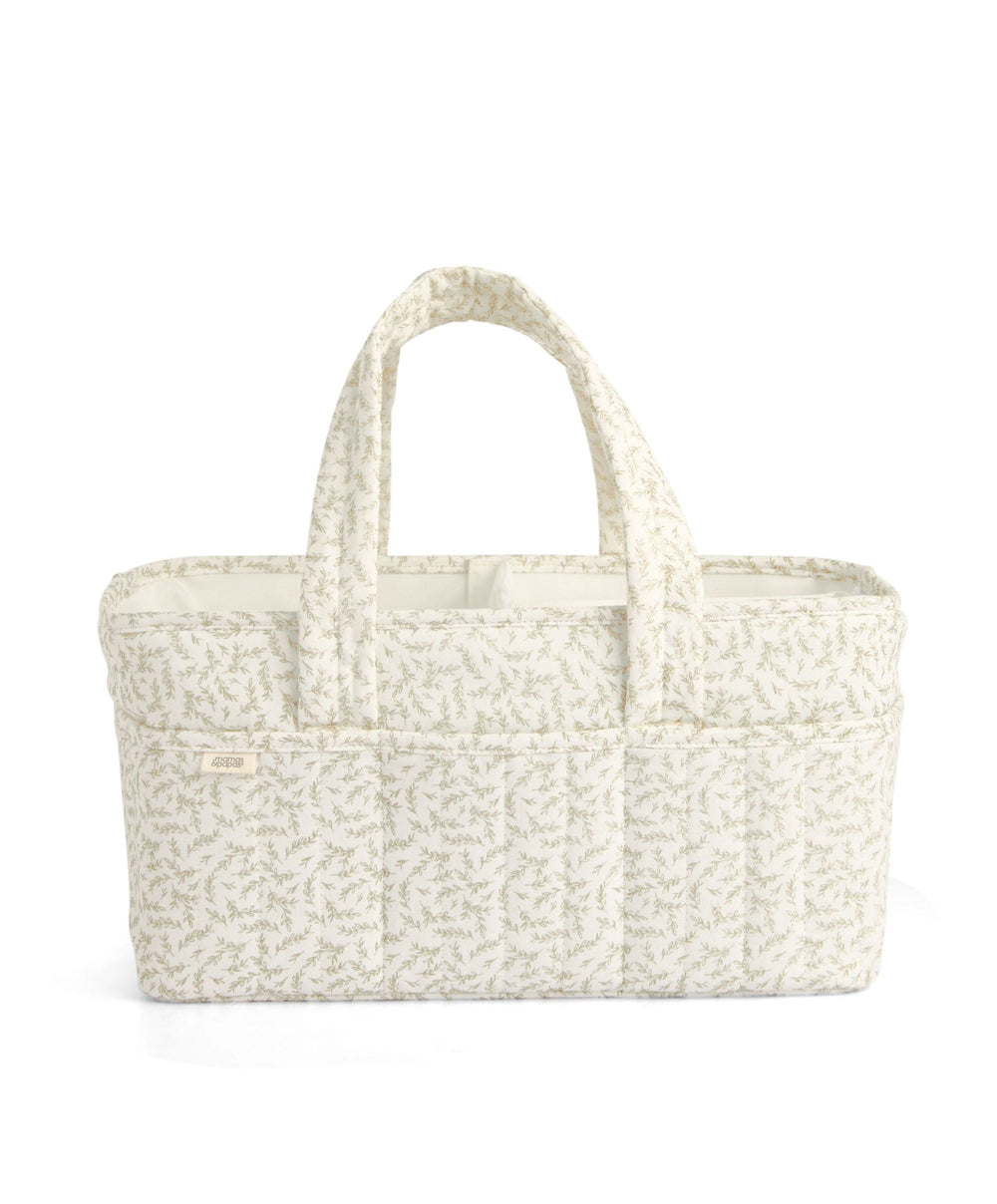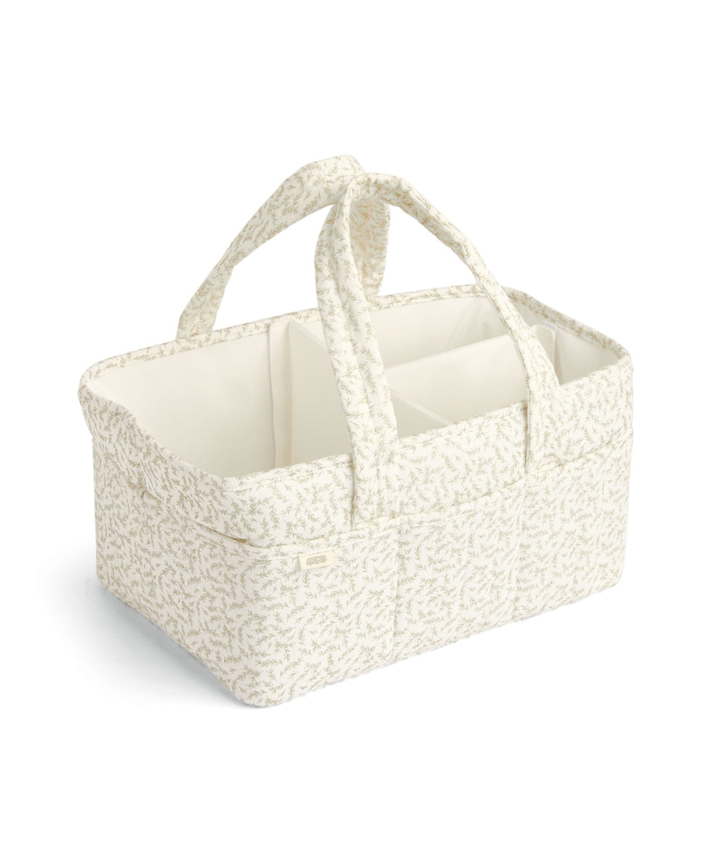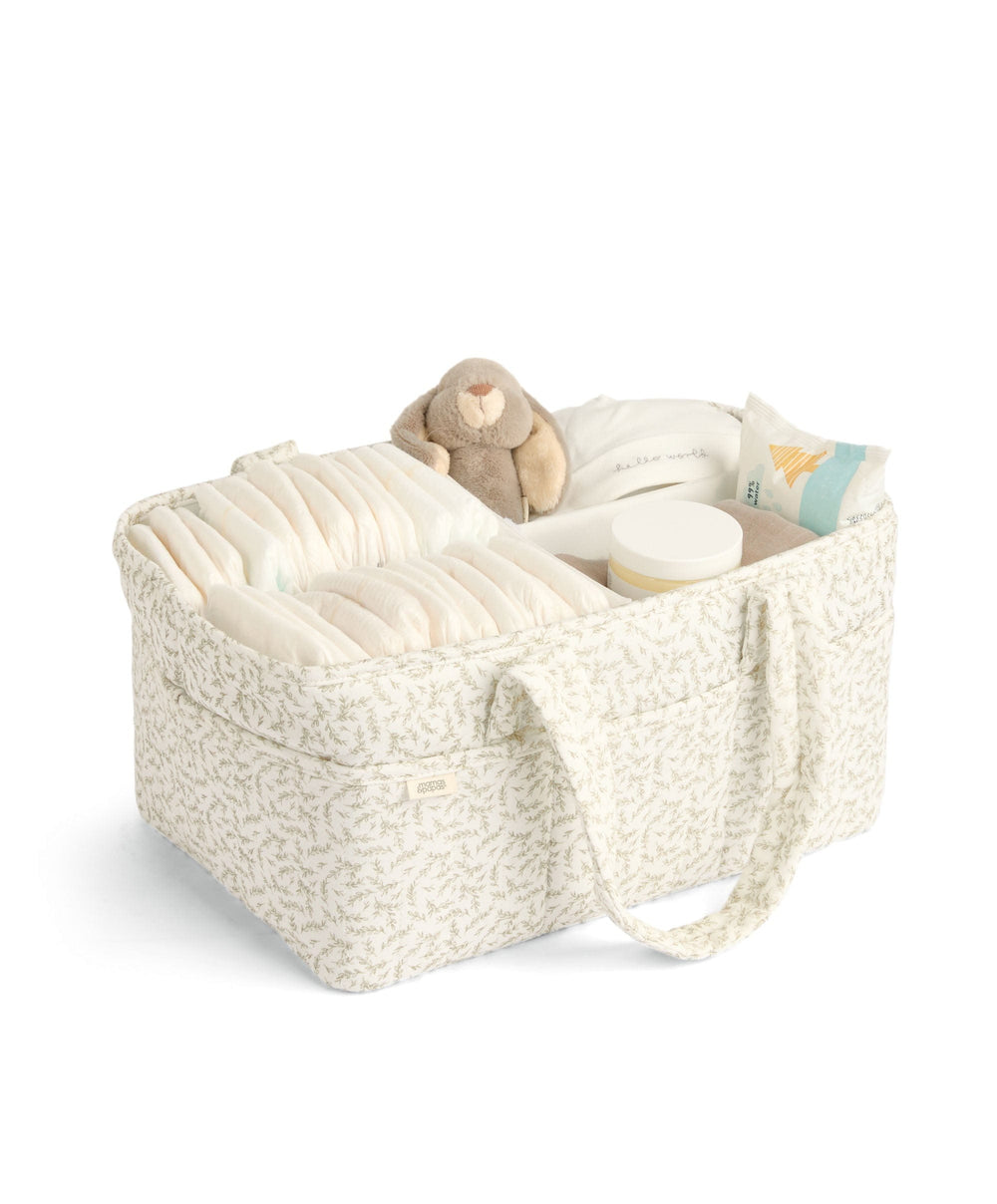 A stylish place to store all your changing essentials. Plenty of space to store, thanks to three inner compartments with removeable inserts and outer pockets for smaller items. Large handles allow you to move it easily around the house and folds down flat when not in use. Made from a natural soft organic cotton waffle fabric in a beautiful Leaf print that coordinates with Mamas & Papas Welcome to the World Seedling collection.