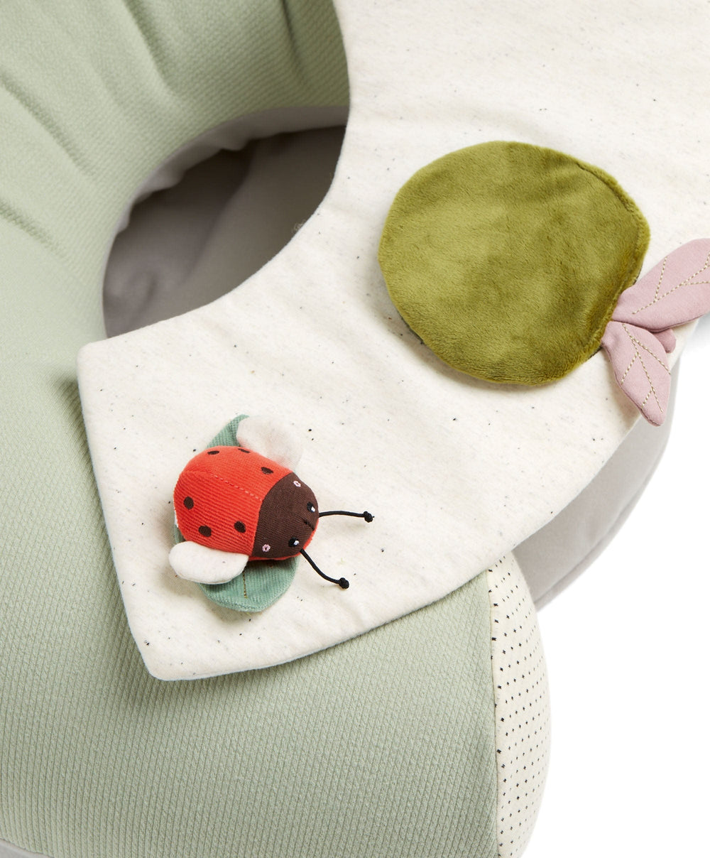 It’s an exciting milestone when your little one is ready to sit up and explore! With our sit and play baby floor seat, they can safely sit supported while discovering their new safari-themed toys. Watch as they crinkle, squeak, and shake the rattle in the company of their adorable jungle animal pals. There’s also a handy teether to help soothe little ones, and when they spot themselves in their very own baby mirror, their smile will say it all!