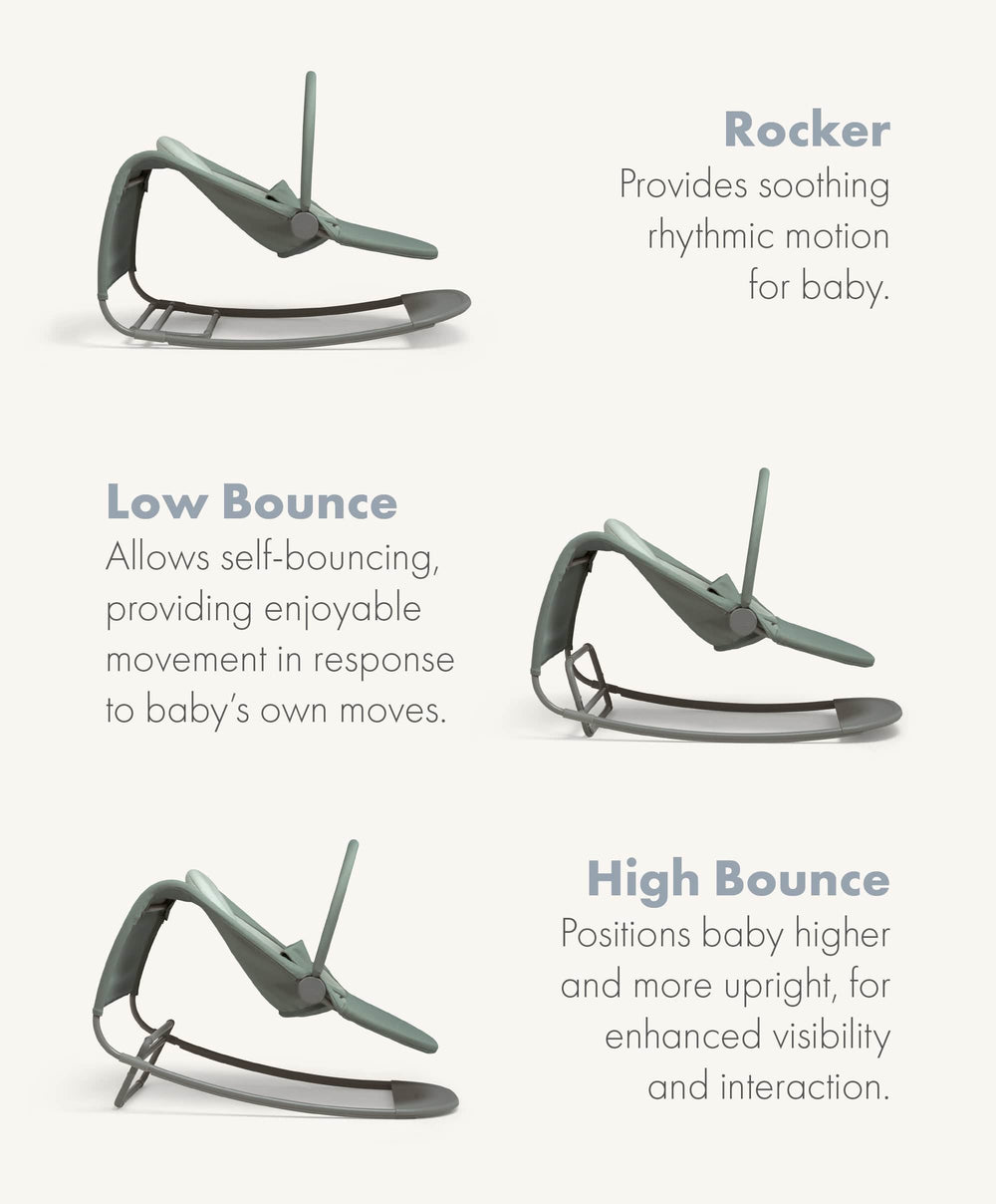 - Low and high bounce functions allow for self-bouncing, providing enjoyable movement in response to baby's own moves.
